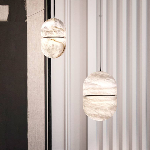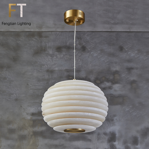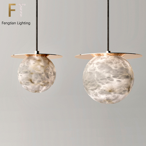Lustres et lampes suspendues modernes en albâtre blanc, lampes suspendues rondes à LED, design artistique, lustre en marbre