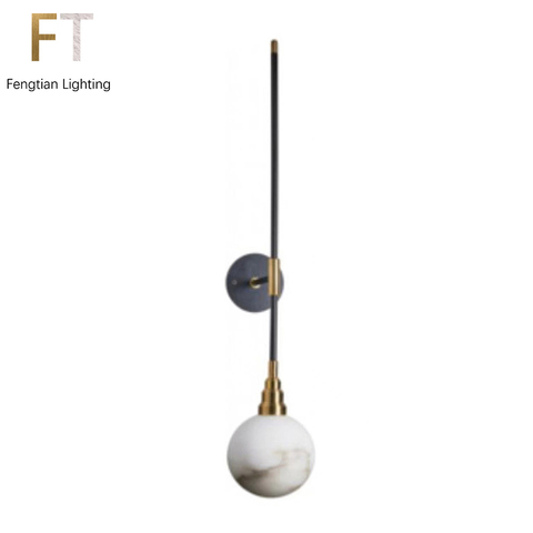 Lampe murale en albâtre espagnol boule minimaliste moderne lumière LED corps en cuivre pour la décoration intérieure pour le salon chambre à coucher pour les hôtels